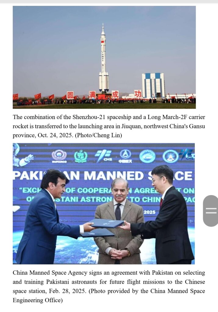 Following the signing of a cooperation agreement between China and Pakistan in February this year, the selection of Pakistani astronauts for participation in China’s space missions has officially begun. The preliminary selection process is currently under way in Pakistan, while the secondary and final selections will take place in China.