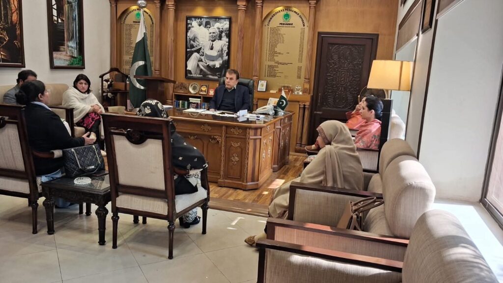 Peshawar: Commissioner Peshawar Division, Riaz Khan Mehsud, has assured full cooperation and institutional support to the Women Chamber of Commerce and Industry Peshawar Division (WCCIPD) for promoting economic stability and empowering women entrepreneurs.The assurance was given during an important meeting held at the Commissioner’s Office, Peshawar, with a delegation of WCCIPD led by President Qurat Ul Ain. The delegation included Senior Vice President Zara Imtiaz, former Vice President Zobia Aamir, Executive Member Laziza Arbab, members Saima Amjad (former Vice President) and Asia, Secretary General Saba Hidayat, along with other representatives.During the meeting, President WCCIPD briefed the Commissioner on the establishment, vision, and objectives of the Chamber, highlighting its efforts in promoting women-led businesses through capacity building, business facilitation, improved market access, and policy advocacy.The delegation emphasized the significance of women’s economic empowerment through self-employment, small and medium enterprises (SMEs), home-based industries, and startups, stressing the need to further strengthen the role of women in the local and regional economy.WCCIPD also proposed the nomination of a focal person at the Commissioner’s Office to address issues faced by women entrepreneurs in a timely manner. Additionally, the formation of a joint committee was suggested to ensure sustained institutional collaboration. It was agreed to jointly organize exhibitions, markets, and promotional events to enhance market access for women-led businesses.Commissioner Riaz Khan Mehsud appreciated the initiatives taken by WCCIPD and reaffirmed his commitment to supporting women’s economic empowerment, expressing readiness for coordinated efforts and long-term collaboration in the future.