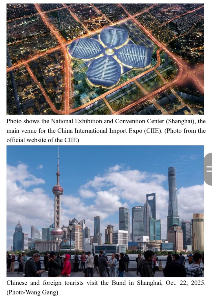The Ministry of Commerce will launch a new initiative under the theme of “Shared Market, Export Opportunities in China,” accompanied by a ceremony inaugurating related events. The China Pavilion at the 8th CIIE will showcase the country’s latest achievements in deepening reform and advancing high-standard opening-up during the 14th Five-Year Plan period. The Hongqiao International Economic Forum will release The World Openness Report 2025 and the latest World Openness Index.