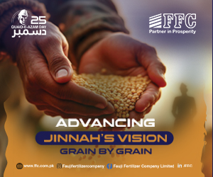 FFC Unveils Quaid-e-Azam Day Advertisement Honouring Jinnah’s VisionISLAMABAD: Fauji Fertilizer Company (FFC) has unveiled a special advertisement on December 25 to mark the 149th birth anniversary of Quaid-e-Azam Muhammad Ali Jinnah, highlighting the theme “Advancing Jinnah’s Vision – Grain by Grain.”The visually striking ad features hands holding grains, symbolising agriculture, self-reliance and sustainable national growth, aligning with Quaid-e-Azam’s vision for a prosperous Pakistan. Released on Quaid-e-Azam Day, the campaign reflects FFC’s role as a “Partner in Prosperity” and its continued commitment to strengthening the country’s agricultural backbone.