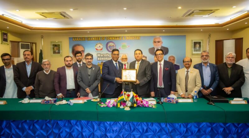 Exchanging views during a meeting held at the Karachi Chamber of Commerce & Industry (KCCI), Mauritian HC stated that diplomatic ties between Pakistan and Mauritius date back to 1970, adding that Pakistan holds the distinction of being the first country to establish its embassy in Mauritius following the island nation’s independence. While relations between the two countries have traditionally been cordial and cooperative, he observed that bilateral trade has witnessed a slowdown in recent years, which requires urgent attention.The meeting was attended by Honorary Consul General of Mauritius in Karachi Sohail Yasin Suleman, President KCCI Muhammad Rehan Hanif, Senior Vice President KCCI Muhammad Raza, Chairman Diplomatic Missions & Embassies Liaison Subcommittee Ahsan Arshad Sheikh, Chairman Fairs, Exhibitions & Trade Delegations Imran Moiz, along with members of the KCCI Executive Committee.The Mauritian High Commissioner pointed out that Mauritius currently imports significantly more from Pakistan than it exports, resulting in a sizable trade imbalance. Pakistan’s exports to Mauritius include Basmati rice, cement, textiles, bedsheets, towels, and other products, whereas Mauritian exports to Pakistan remain minimal. He recalled that Mauritius had earlier exported pineapples to Pakistan, describing them as among the finest in the world, along with other premium tropical fruits such as lychees and mangoes.