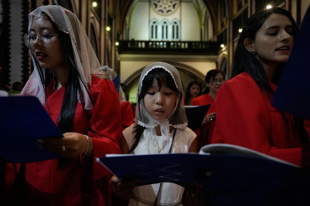 Christians attend prayer on Christmas Eve, Wednesday, Dec. 24, 2025, at St. Mary Cathedral in Yangon, Myanmar