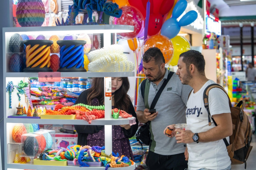 At 9 a.m., when the Yiwu International Trade Market, the world’s largest wholesale market for small commodities located in the city of Yiwu in east China’s Zhejiang province, opens, a dynamic crowd quickly fills the space.Digital interactive screens display real-time global order data,while merchants showcase an impressive range of products through livestreaming under bright lighting.